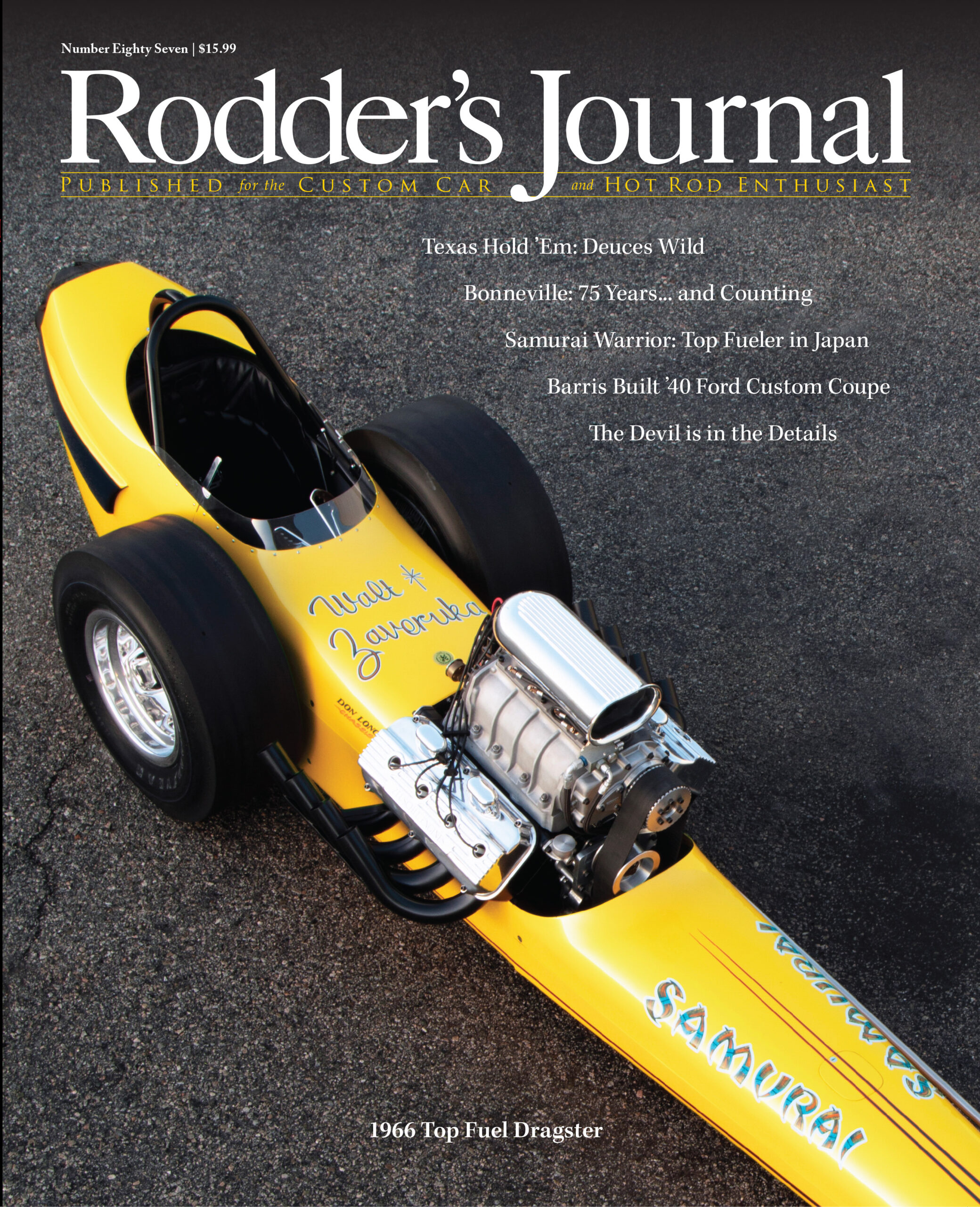TRJ #87 has finally reached completion. Subscriber copies are at the mailing house and we have single copies available for shipping from our office in Denton, Maryland. We couldn’t be more excited to share the content we’ve created for this issue. Feature cars run the gamut of traditional rodding, customizing and racing, including historic restorations; Pete Eastwood’s “Samurai” Top Fueler and Rich Hubbard’s Barris-built Tom Hocker Forty and a pair of time-capsule Deuce roadsters belonging to our friends from Texas, Steve Wertheimer and “Flat Top Bob” Owens. We also explore Cody Walls’ concept custom ’49 Buick and Andy Volpini’s road warriors, a ’40 Ford coupe and F-100 pickup. We also feature our old friends Bobby Alloway and Gay Case’s relatively new event, The Triple Crown of Rodding, held in the Nashville, Tennessee area. Jay Fitzhugh delves into the detailed world of traditional hot rod hardware and fasteners and noted automotive designer Larry Erickson’s shares his take on Bonneville racing history. And in our Parts is Parts feature we showcase the aluminum heads and assorted pieces that Jack Chisenhall developed for the Red Ram Hemis.
